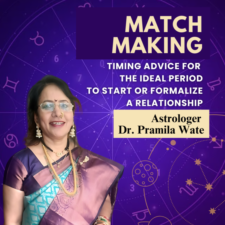 Astrologer Dr Pramila Wate provides real solutions for people facing relationship and family challenges. Don’t wait—solutions are within reach! She Visits Regularly in Mumbai Pune Nagpur Patna Jaipur Bhubaneswar Odisha Guwahati Raipur Indore Bhopal & all Major city of India to Provide Astrology Consultation. She has expertise in Kundali Milan, Marriage Relationship Career Progeny, Love, Legal Cases & Medical Astrology related issues.